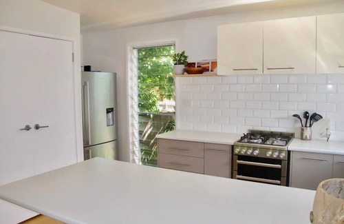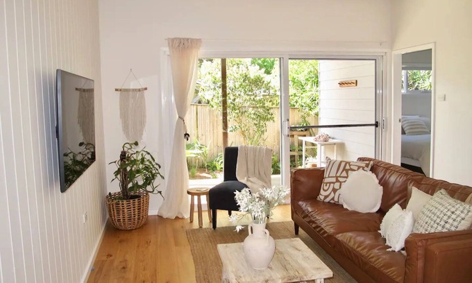 WERRI North. is a freestanding guesthouse with two bedrooms, an open plan lounge area and fully equipped kitchen. There is a large outdoor deck overlooking a tropical landscaped garden. Privacy, tranquility and a modern contemporary feel, this guesthouse is perfect for couples, friends and families. The property is located at the rear of the main house. It is a totally private space with a gated access.