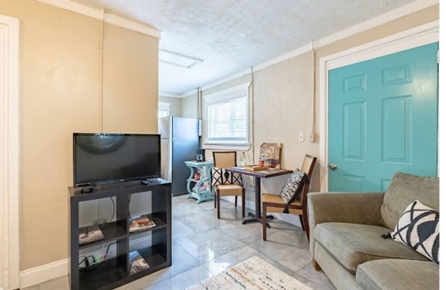 This cozy, approximately 400sq ft urban retreat is newly renovated. This is the perfect place to enjoy all the fun of downtown and Midtown Atlanta. Close to the fun and when the fun is over you are just 15 min to Hartsfield Atlanta Airport. The studio has its own front and back door, kitchen stocked with dishes, pots, coffee maker (coffee, tea, sugar and creamer provided) as well as bottled water and snack basket.