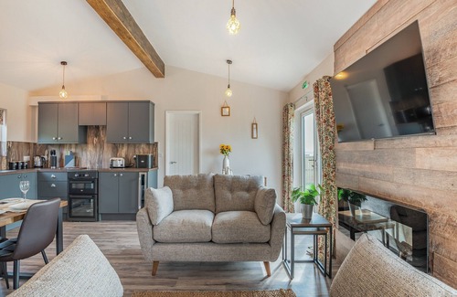Bedroom 2: Zip And Link Super Kingsize Bed (2 x Singles On Request), Smart TV Ensuite: Cubicle Shower, Heated Towel Rail, Toilet. LPG central heating, electricity, bed linen, towels and Wi-Fi included. Travel cot and highchair. Welcome pack. External utility room with washing machine. Enclosed lawned garden with sitting out area, garden furniture and barbecue. Bike store. Electric vehicle charging point. Private parking for 2 cars. No smoking. Please note: Sorry, no hen or stag parties.. West End Farm Lodge Alabaster is a detached lodge that has been built in 2023, situated on the owner’s 14-acre working farm. Set within the Wye Valley Area of Outstanding Natural Beauty with fabulous far-reaching views of the rolling countryside. All ground floor accommodation with open plan living space with a well-equipped kitchen – perfect for cooking up a storm whilst all socialising together. There are two bedrooms, both with en-suite shower rooms. One of the bedrooms has a zip and link bed so can be converted to twin beds if needed. Outside there is decking area with seating and enclosed lawned area – perfect for your four legged friends. There is an outdoor washing area for bikes and dogs, and use of a utility room with washing machine. Dog sitting is available with prior arrangement and paid directly to the owner.
