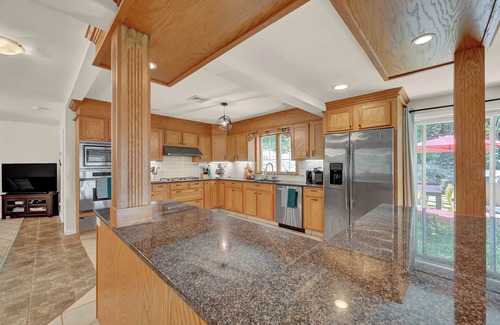 Please Note: We want our guests to get the most out of their day so we offer generous check in (noon) and check out (3pm) times. Guests have free rein of the property with the exception of the garage, attic and basement. Because we are located at the top of a hill with a great view and a lot of privacy, the driveway is a steep climb and can only accommodate a maximum of 4 parked cars. The house has 6 Smart TV's so you can log into all your favorite streaming services with your own subscriptions, including if you would like Live TV. This property is for residential use only.