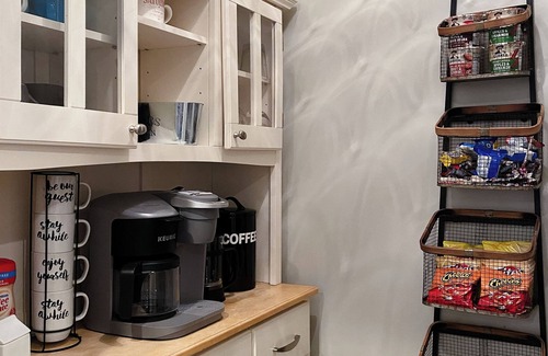 The kitchen is fully stocked. Front porch has seating for the morning coffee or a good book.