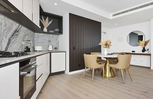 Dive into unmatched luxury in this 2BR/2BA Melbourne gem. Designed with precision, it epitomises urban sophistication from its sleek decor to premium finishes. Revel in panoramic city vistas that enchant round the clock. Start days with Melbourne's skyline as your backdrop and evenings watching sunsets. Every corner spells comfort, making your stay both restful and grand. Ideal for both work trips and leisurely getaways, this apartment promises a Melbourne experience like no other.