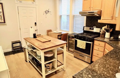 The unit is located near Chicago Avenue and Western Avenue in one of the best neighborhoods in Chicago, Ukrainian Village. Ukrainian Village has many great restaurants, bars and shops! Places like Kasama, Black Dog Gelato, Sportsman's, The Beetle, Hi-Lo, Segnatore, Spinning J, Dark Matter, and Smith Park are all close and walkable. The bus system runs often and can get you into downtown, West Loop and River North in about 10-15 minutes. Trains are nearby as well, but the bus is faster from here.