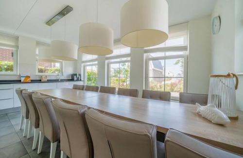 "Westertoren 12", 7-room bungalow 150 m2 on 2 levels. Comfortable furnishings: entrance hall with separate WC. Living room with digital TV. Exit to the terrace. 1 double bedroom with 2 beds. Open kitchen (6 hot plates, dishwasher, electric coffee machine, combination microwave) with dining table. Bath or shower. Heating. Upper floor: 5 double bedrooms, each room with 2 beds. 2 baths or showers/WC. Terrace. Terrace furniture. Facilities: Internet (WiFi, free). Parking (2 cars) at the house. Please note: non-smoking house. Smoke alarm. Pets on request. Bookings accepted for holiday purposes only. A deposit of 100 EUR per person can be charged on site.
