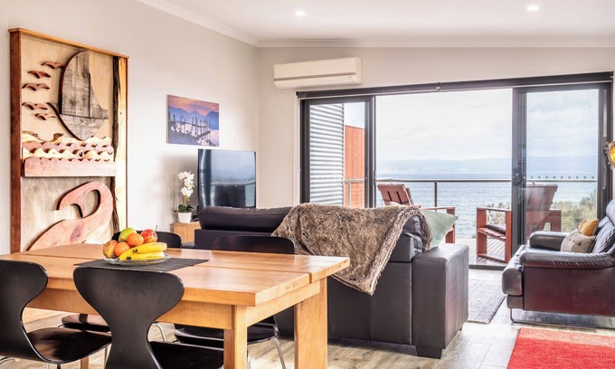 Whale Watcher is a luxurious one bedroom apartment with a stunning ocean vista overlooking the Great Oyster Bay. With undisturbed ocean views this apartment is perched just meters from the water’s edge.