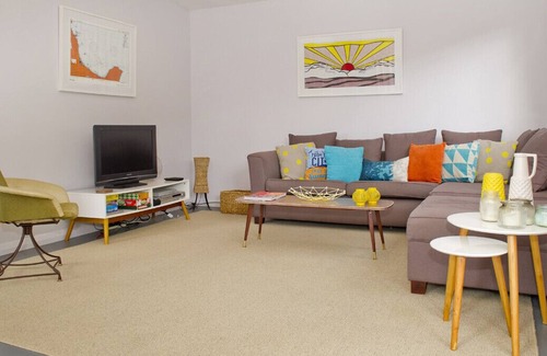 This Whiritoa holiday home includes funky open plan living, with a comfortable set up for families and couples to share... Everything you need is on hand for a fuss free stay including WiFi - the beachy interior is the perfect backdrop for your classic kiwi getaway, with easy outdoor flow onto the deck where you can fire up the BBQ while the kids play in the yard!
