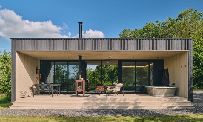 Accommodating the very best of indoor-outdoor living, this rural retreat impresses with a contemporary, fully-fitted kitchen, sumptuous living space and minimalist Scandinavian furnishings throughout. A moody, industrial-inspired colour scheme perfectly offsets the sleek decor, meanwhile the jaw-dropping private veranda welcomes guests to reconnect with nature as they indulge in some well-earned R&R. There's also a luxury bathroom complete with a spa-like double rainfall shower and magnificent panoramic views.