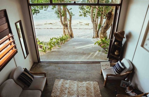 The BOAT HOUSE (as listed here) or the BEACH HOUSE (see Beach house listing) which has a loft with two beds - a queen bed or 2 single beds – and is also completely self-contained and beachfront. The DELUXE VILLA (as listed here) has a king bed or can be broken down into 2 singles and two single sofa beds – and is also completely self-contained and beachfront.