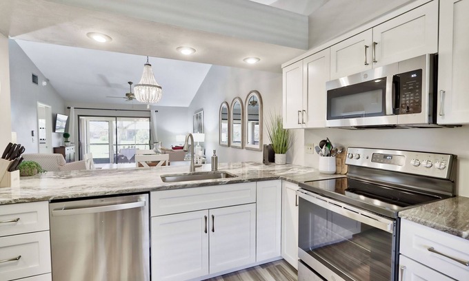 Whispering Palms in Cinnamon Cove is a quaint two-bedroom, two-bathroom condo in the gated community of Cinnamon Cove. This newly remodeled condo has been tastefully decorated and offers a neighborhood full of daily and weekly activities. The community offers 4 pools, pickleball courts, a full-time activities director, and many more amenities. This home is perfect for an active couple or family.