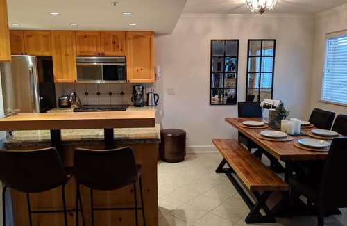 This beautifully renovated and luxurious, 3 floor town home comes with new wool blend carpets, granite countertops, stainless appliances, crown molding and a very generous ~1300sqft (120m2) floor plan for easy entertaining. Master bedroom contains a king sized bed and TV. Second bedroom contains a custom Whistler inspired bunk bed with single up top and double below plus a trundle. Extra queen sized bed is contained within the pull out sofa in the living room.