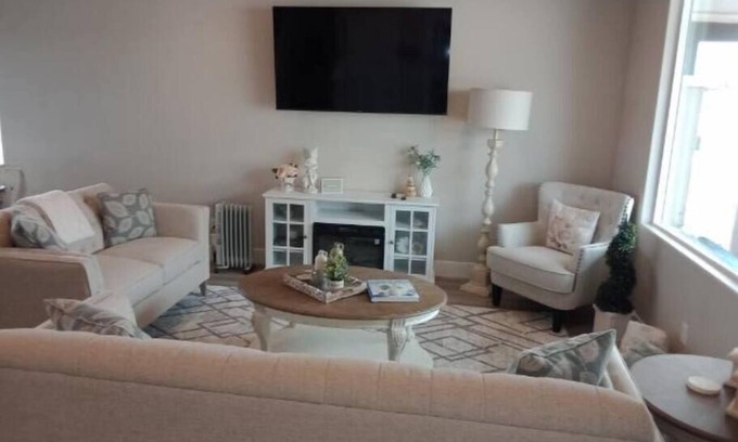 ○ Includes couches, large tv, coffee table, picture window with stunning views