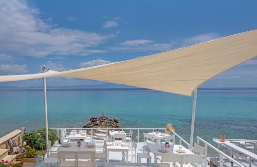 Lying above the beach of Moudounou, White Suites Resort is an exclusive luxurious boutique hotel situated a short walk from the center of Athitos Village in the heart of Kassandra in Chalkidiki. Each suite has its own distinctive stylish decoration that is combined with local architecture. Each suite is equipped with wireless internet and 32" TV screens. Guests can enjoy beautiful views of the Aegean Sea and the sunset from their private balconies. The newly constructed boutique hotel combines traditional local architecture with a contemporary minimalist decoration.