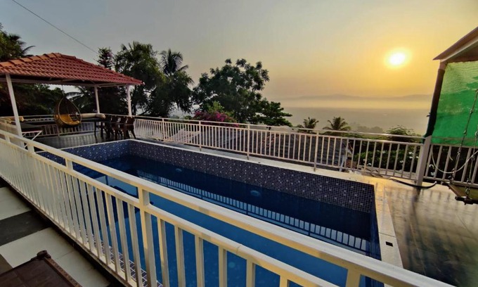 Offering a garden, WhiteHouse Homestay by Oxystays Hospitality provides accommodations in Alibaug. Among the facilities at this property are a 24-hour front desk and full-day security, along with free Wifi throughout the property. The apartment offers parking on-site, a pool with a view, and room service. A terrace with mountain view, a cable flat-screen TV, and air conditioning are featured in some units. At the apartment complex, each unit comes with a private bathroom. Guests at the apartment can enjoy an Asian breakfast, and breakfast in the room is also available. Guests may eat at the on-site family-friendly restaurant, which is open for dinner, lunch, brunch, and high tea. Chhatrapati Shivaji International Mumbai Airport is 70 miles away.