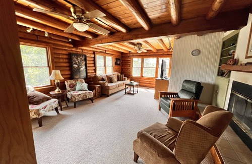 LISTING SUMMARY: Nestled in the woods, Log House is perfect for any large group. This two-story cabin-style 2320 sq ft. home has beautiful forest views, direct trail access, private deck and lots of space to spread out.