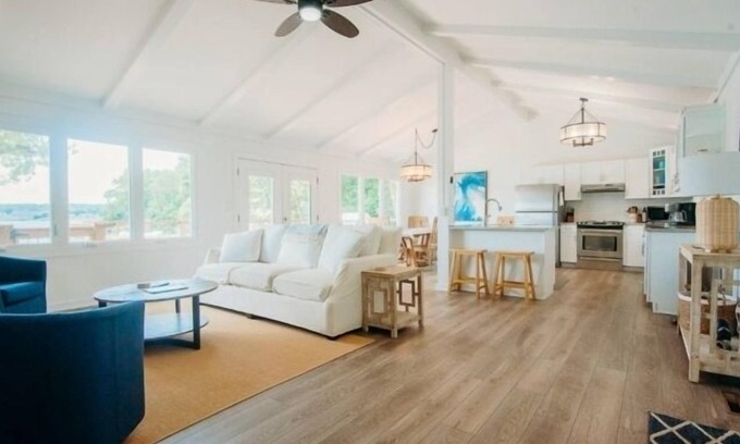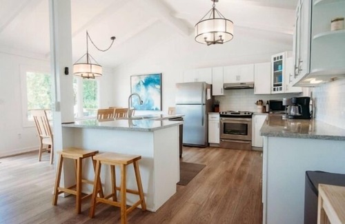 Your lakeside paradise comes fully equipped with amenities for aquatic adventures, including two kayaks, a paddleboard, a large floating mat, and multiple life jackets for both adults and kids. With only one step up at the front door, accessibility is effortless for all.