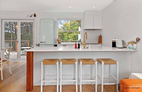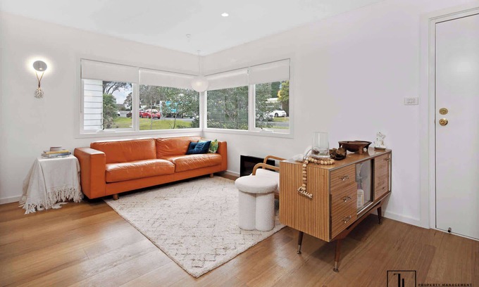 Ideally positioned near Tomakin, Mossy Point, and Broulee, this cozy cottage is perfect for beach and river adventures. The light-filled, retro-modern living space flows into a fully equipped kitchen and dining area, while two queen bedrooms and a full bath ensure comfort.