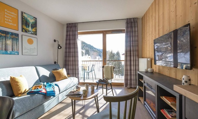 Built in 2025, Le Serra Neva is located in the heart of Serre Chevalier Villeneuve (1400). The residence offers many amenities, including a relaxation area and a space for children and teenagers. The town center and its shops are a 10-minute walk away, approximately 1 km away. For skiing, the ski lifts and slopes are 500 m from the residence. Surface area : about 35-40 m². Living room with bed-settee. Bedroom with 2 twin beds or double bed. Kitchen with kettle, coffee machine (filtres), oven, toaster, dishwasher, microwave, 2 vitroceramics cooking rings, fridge. Bathroom with hairdryer, towel-dryer OR Shower room. WC. Balcony OR Terrace.