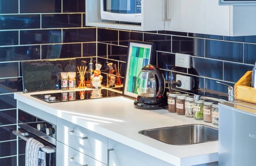 This charming 1-bedroom retreat is perfect for up to 2 guests. Relax in the living area and make use of the fully equipped kitchen for all your meal prep needs.