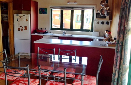 Fabulous and popular holiday house right next to a creek which is great for kayaking. Thyme Out and Wild Thyme are right across a quiet road from a gorgeous white sand beach .Wild Thyme is the 2nd house down the drive Perfect for families or couples. Eco cottage, separated from a similar cottage ( Thyme Out) by a huge deck. Works really well for two families or group of friends in each two bedroomed cottage, although still fine if you just want one house as the houses are private enough with own little fenced areas.