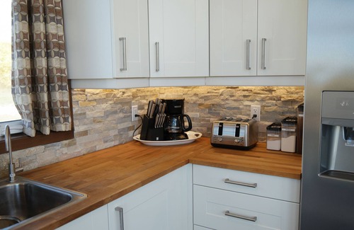The house is a custom built, 3 bedroom modern style bungalow with vaulted ceilings and exposed wooden beams. The west side of the home is approximately 80% windows. This allows the sun to stream in and ensures that an amazing view is always just a glance away. Tastefully decorated and furnished, the home is very relaxing and has an open plan layout. Whether your goal is to visit area amenities or perhaps enjoy a private getaway to unwind this home away from home is outfitted to make your travels easier. Many extra items and supplies are included and a list is sent in advance with the Welcome Guide to help in packing and planning.