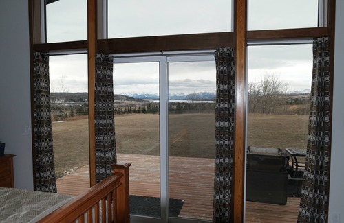 Situated in the Wildcat Hills on a 20 acre property, this licensed vacation home offers stunning views of Ghost Lake and the eastern slopes of the Rockies! Enjoy easy highway access, with only a 12 minute drive to Cochrane, AB, and all city amenities. Due to the quiet nature of the property, there have been many sightings of wildlife. Some of these include deer, elk, moose, bear, coyotes, foxes, cougars, eagles, and others. It has been quite common to discover deer grazing around the house, and they often bed down in the surrounding trees. Absolutely NO hunting allowed! The acreage provides a very private and relaxing environment and is a great location to enjoy both Calgary and the mountains. For security there is a front door camera that is disabled upon check-in, which occurs when a guest opens the door with their unique code.