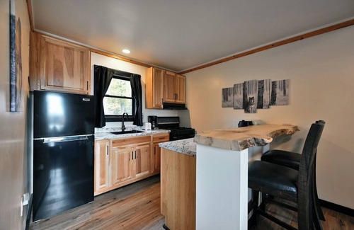 Both Cabins are completely updated with an urban rustic decor, have a fully equipped kitchen, living/dining area and both are pet friendly.