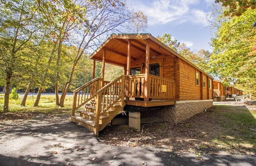 The Wilderness Resort Lake View Cabins offer lovely views of the Cool Springs Lake. These inviting & cozy cabins (375 sq ft) feature a Queen in the bedroom, an open area with twin bunk beds, and a pull out sofa. They sleep six guests & have a fully equipped eat-in kitchen, cable TV, wifi & heat/air conditioning. Unwind on the porch, gather at the outdoor picnic table, and enjoy use of the outdoor grill. Complimentary firewood provided for this cabin. Must be 21 or older, with valid credit card to check-in!