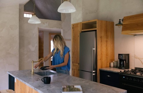 This modern, coastal-inspired getaway has been curated throughout and offers one bedroom (queen), organic linens and towels, a fully stocked kitchen with four-burner gas stove and oven, oversized sink, dining kitchen island with custom quartzite countertops, toaster, french press coffee maker, heat and AC, curated decor, smart TV, Sonos, high speed WiFi (300 mbs), dedicated workspace, in-unit washer and dryer (available for guest use), oversized soaking tub with handheld shower attachment, Public Goods toiletries and personal products, and seasonal flower and herb gardens...just to name a few features. Come enjoy Maine in a whole new way! Dogs welcome with a $100 pet fee.