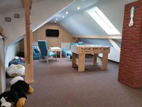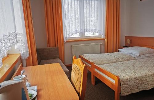 Providing inner courtyard views, Willa Hamernik AGROTURYSTYKA in Tylicz features accommodations and a garden. This guest house provides free private parking and private check-in and check-out. On clear days, guests can head outside to enjoy the guest house's outdoor fireplace, or simply kick back and relax. At the guest house, all units are equipped with a desk and a flat-screen TV. Every room has a kettle, a private bathroom, and free Wifi, while selected rooms are equipped with a terrace and some have mountain views. At the guest house, every unit has bed linen and towels. There is a coffee shop and lounge. For guests with children, the guest house offers an indoor play area, outdoor play equipment, and a baby safety gate. Skiing and cycling can be enjoyed nearby, while a bicycle rental service and ski storage space are also available on-site. Nikifor Museum is 3.9 miles from Willa Hamernik AGROTURYSTYKA, while Krynica Zdroj Train Station is 4.6 miles away.