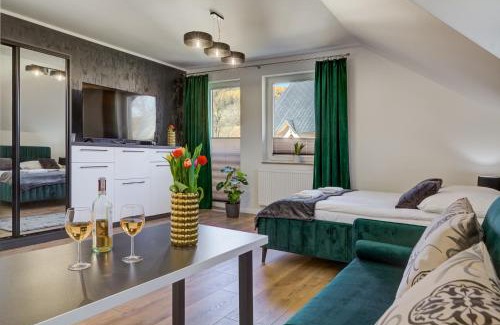 Willa Rynek in Tylicz provides accommodations with a garden and barbecue facilities. This resort village offers free private parking and a mini-market. All rooms have a flat-screen TV with satellite channels. At the resort village, all units have a wardrobe. The rooms include a kettle, a private bathroom, and free Wifi, while selected rooms also offer a balcony and some have garden views. At the resort village, the units include bed linen and towels. A buffet breakfast is available at the resort village. Guests may eat at the on-site modern restaurant, which is open for dinner, lunch, cocktails, and high tea. Guests at Willa Rynek will be able to enjoy activities in and around Tylicz, like walking tours. Guests at the accommodation can enjoy skiing and cycling nearby, or make the most of the sun terrace. Nikifor Museum is 4.3 miles from Willa Rynek, while Krynica Zdroj Train Station is 4.9 miles from the property.