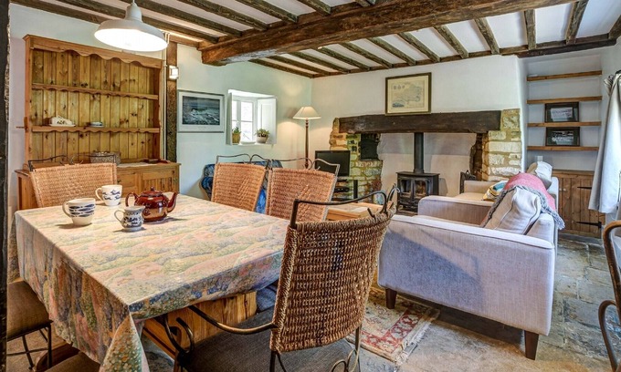 Cotswolds style stone built cottage with period features Ground floor with living room furnished with dining table and chairs, sofa, easy chairs and wood-burning stove. Kitchen with double gas hob, double oven, washer-dryer, fridge-freezer, chinaware and cooking equipment. Bedroom one with a double bed, bedside tables and clothes hanging. Bedroom two with a single bed, bedside table and single wardrobe. Bedroom three with double bed, bedside table and built-in wardrobes. Family bathroom with bath and overhead shower, wash basin and WiFi. Enclosed garden with garden furniture. Walking distance to local pub. 3 miles to Blenheim Palace. 10 miles to Oxford. 5 miles to Bicester Village.