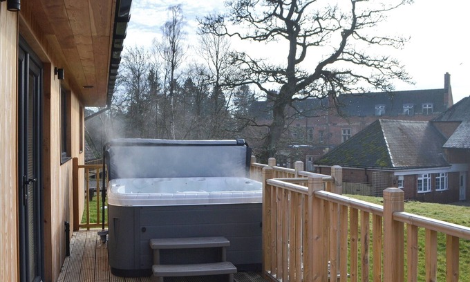 This cosy, welcoming lodge with its own hot tub is the perfect place to return to after a day’s adventure!. 3 steps to entrance.