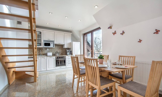 Wind Rose Residence - luxury ApartHotel Gdańsk- two level apartment small has 2 Bedrooms , 1 Bathroom, and max occupancy of 6 people. The minimum rental for this property is 1 nights, but this can change depending on the season you plan on staying. Previous guests have given good rated it, and VRBO labeled it a top-rated Apartment because of the excellent services rendered by the owner or manager of this Apartment, and has consistently provided great experiences for their guests. Most families or guests that use it recommend it to their friends and some of them are repeat guests. Apartment has a friendly neighborhood, and the Emaus has interesting places to visit. If you want to learn more about the Apartment in Emaus, such as places to visit and things to do nearby, you can check below to learn more.