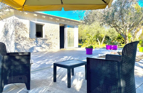 Independent villa surrounded by greenery and super bright with large paved garden, barbecue and outdoor dining area.