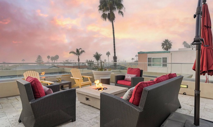 The real heart of the home lies on the rooftop patio. Spend your days relaxing with the SoCal sun, sea breeze, and sprawling ocean views in the distance. When golden hour hits, fire up the grill and dine alfresco for an ideal evening BBQ. End the night around the fire pit, telling stories and making memories with your friends and family.