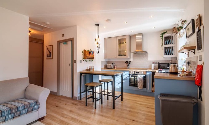 The beautifully-decorated ground floor property provides all the home comforts, including a spacious double bedroom, bathroom, open-plan kitchen, and living area.