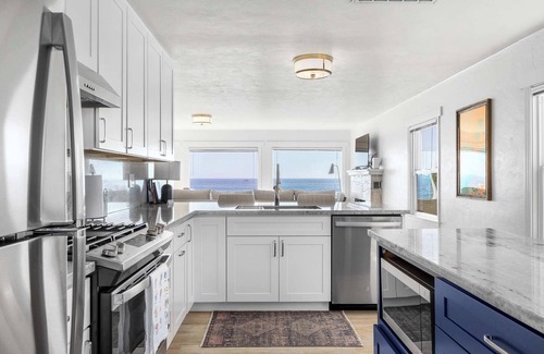 Discover the perfect blend of comfort and access to surf at our front row, oceanfront three-bedroom, two-bathroom vacation rental in the Pleasure Point neighborhood of Santa Cruz, California. This home is located on iconic East Cliff drive in the very heart of Pleasure Point. Known for its historic surf scene and laid-back beach atmosphere, Pleasure Point offers excellent waves directly across the street from this home.