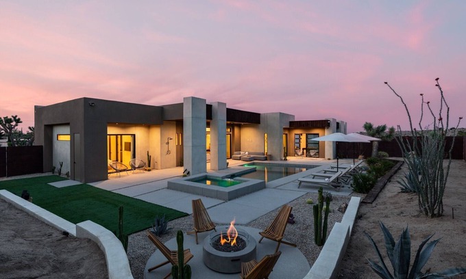 Windsong | Modern compound w pool & spa is located in Yucca Valley. Windsong | Modern compound w pool & spa provides accommodation, featuring TV, Sports/Activities, Fireplace/Heating, among other amenities. This House features TV, Sports/Activities, Fireplace/Heating, to make your stay a comfortable one.