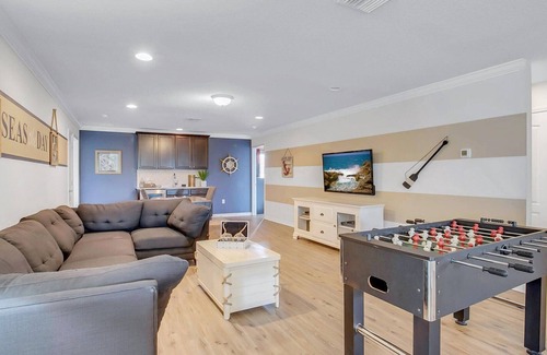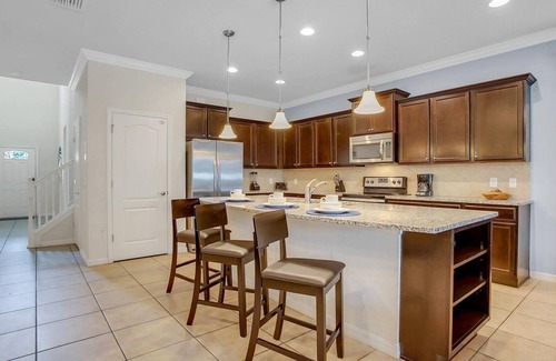 Windsor at Westside Resort Vacation Home - includes resort clubhouse amenity access Our 8-bedroom 6-bathroom private pool spa vacation home is a great option for families wanting a home base to enjoy the best of all that Central Florida has to offer Windsor at Westside Resort Private Pool Home Sleeps up to 16 8 bedrooms 6 bathrooms Private Pool and Spa - faces Southwest with maximum sun exposure during the day Pool Table Foosball and more in Game Room 6 miles to Disney World property Fully equipped Kitchen with dining for 16 at the dining room table Additional three barstools at the breakfast bar Pack n Play Outdoor Dining Seats 4 4 Sun LoungersBEDROOMS 1st Floor DOWNSTAIRS Bedroom 1 One King Bedroom Attached Bathroom 43 TVBedroom 2 One Queen Bedroom 32 TVBEDROOMS 2nd Floor UPSTAIRS Bedroom 3 One King Bedroom Attached Bathroom 43 TVBedroom 4 One Queen Bedroom Jack Jill Bathroom shared with Bedroom 5 32 TVBedroom 5 Two Twin Bedroom Jack Jill Bathroom shared with Bedroom 4 32 TV Harry Potter ThemeBedroom 6 Two Twin Bedroom 32 TV Mickey ThemeBedroom 7 Two Twin Bedroom 32 TV Frozen ThemeBedroom 8 One King Bedroom Attached Bathroom 43 TVPool Spa Heater Charges and Information There is an additional optional charge of 30 per day plus tax to heat the pool The Spa will not heat up unless the heater is paid for Please note that our pools are serviced on a weekly basis Resort Parking Rules The resort allows a maximum of 3 cars Do not block the sidewalk or park on the street or the resort will fine you3rd car needs to be parked parallel to the driveway to not block the sidewalkSecurity Camera Disclosure Above the Garage DoorWindsor at Westside Resort Amenity Access Included with Rental Resort-style zero-entry pool Interactive Splash Park with water slide for kids Fire Pit Lazy River Poolside Tiki bar and Restaurant Fitness center Arcade Sand volleyball Playground Basketball and Tennis courtsDistances to Shopping Attractions - Walt Disney World 6 miles- Universal Studios 20 miles- SeaWorld 16 miles- Orlando Airport 29 miles- Atlantic Coast Beaches 83 miles- Gulf Coast Beaches 88 miles- Publix Supermarket 3 miles- Dining 1 5 milesWhy Choose this Rental Professionally managed to serve all your needs Management company has over 26 years of experience hosting well over 200 000 families Go straight to your rental with online email check-in 24 7 on-call maintenance No Resort Fees Free On-Site Parking Smoke-free and pet-free for your comfort Towels and linens are provided Complimentary WiFi Additional Rental items Available e g 3 4 burner BBQs cribs pack-n-plays strollers high chairs etc Starter welcome packet supplies - 2 rolls toilet paper per bathroom- 2 round hotel-size bar soap per bathroom- 1 hotel-size shampoo conditioner per full bathroom- 1 roll paper towel- 1 packet dishwasher detergent- 2 trash bags size-13-gallon- 1 small box laundry detergent enough for one load - Garbage can liners in each bedroom bathroom small garbage cansAny supplies beyond this are up to the guest to replenish we do not restock these items No salt pepper or cleaning supplies are stocked due to safety issues This is an industry-standard practice FOR GUESTS WHO BOOK 30 NIGHTS OR LONGER STAYS this does not apply if you are staying less than 30 nights We will collect a 1 500 deposit Balance is due 60 days prior to arrivalIf canceled 90 days or more before arrival we keep with us 250 00 1 250 00 will be refunded If canceled between 61 and 89 days prior to arrival we keep with us the 1 500 00 deposit No cancellation or modification 60 days or less prior to arrival