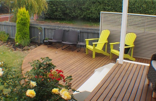 Outdoor furniture allows guests to relax with full sun streaming in from west and fabulous views of Mount Wellington.