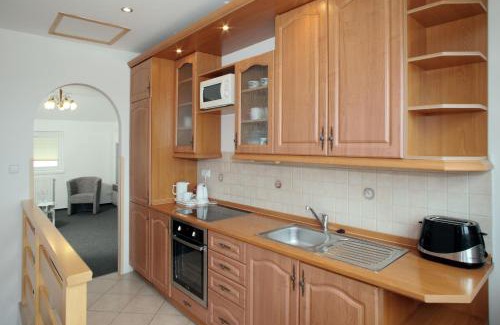 Located a 30-minute tram ride from the center of Prague, Wine Pension Prague offers a wine shop, a garden, free WiFi access and free private parking on site. The Poliklinika Modřany Tram Stop is 2789 feet away. The rooms at Wine Pension Prague come with a TV, a desk, an electric kettle and a private bathroom with shower. The apartment also features a terrace with views of the Vltava River, a well-equipped kitchen with oven, and a bathroom with bath tub. Breakfast is served every morning and a Pizzeria can be found 328 feet from the house. A supermarket is 984 feet away. The Násirovo náměstí Bus Stop is 820 feet away and the Wenceslas Square is 5.5 mi away. The Hodkovičky Golf Club is within a distance of 2.8 mi.