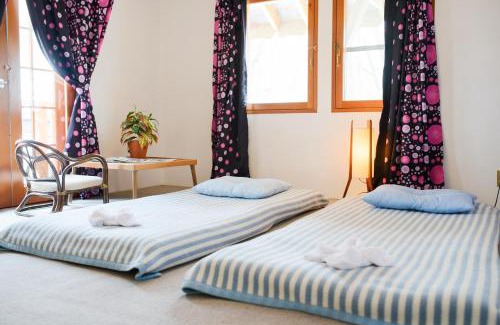 BathroomHairdryer, Shared toilet, Free toiletries, Conditioner, Body soap, Shared bathroom, Shampoo, Toilet paper, Toothbrush, TowelsOutdoorsBalcony, TerraceGeneralFire extinguisher, Smoke Alarm, Fan, Heating, Mosquito net, Trash cans, Carbon monoxide detector, Carbon monoxide sources, CarpetedViewViewKitchenCleaning products, Wine glasses, High chairBedroomLinensAccessibilityUpper floors accessible by stairs onlyRoom AmenitiesDrying rack for clothing, Clothes rack, Tatami (traditional Japanese flooring), Socket near the bedEntertainment & Family ServicesBooks, DVDs or music for children, Board games/puzzlesCleanliness & disinfectionHand sanitizer |
