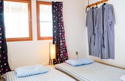 BathroomHairdryer, Shared toilet, Free toiletries, Conditioner, Body soap, Shared bathroom, Shampoo, Toilet paper, Toothbrush, TowelsGeneralFire extinguisher, Smoke Alarm, Fan, Heating, Mosquito net, Trash cans, Carbon monoxide detector, Carbon monoxide sources, CarpetedMedia & TechnologyFlat-screen TVViewViewKitchenCleaning products, Wine glasses, High chairBedroomLinensAccessibilityUpper floors accessible by stairs onlyRoom AmenitiesDrying rack for clothing, Clothes rack, Tatami (traditional Japanese flooring), Socket near the bedEntertainment & Family ServicesBooks, DVDs or music for children, Board games/puzzlesPhysical distancingSingle-room AC for guest accommodationCleanliness & disinfectionHand sanitizer |