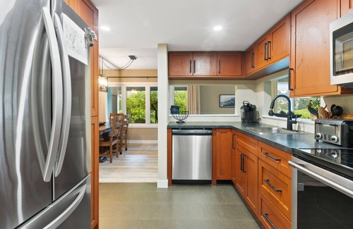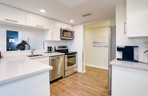 While you're here, you can enjoy all the comforts of home and more, including a full-sized refrigerator/freezer and an oven, as well as a stovetop and free WiFi. Other amenities include a freezer, towels, kitchenware and utensils, and a toaster oven.