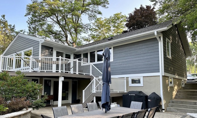 Perfect lake house retreat! This home just went through a major renovation in 2023 - it feels like a brand new home with upgrades throughout. It is a 4 bedroom and 3 full bath, ~3000 square foot home. It is large enough to sleep 12 comfortably and is located only 1 hour 15 min away from Chicago! 20 minutes to Lake Geneva, <20 min from Alpine Valley, and 30 minutes from Milwaukee. Great for families or a friends weekend getaway. We have almost an acre of property and over 50 feet of lake frontage.