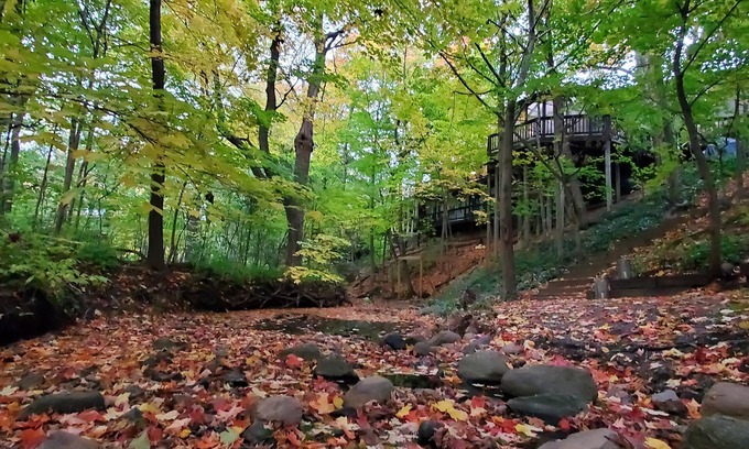 Imagine yourself in a cabin in the woods to unplug and recharge, waking up to chirping birds and a creek, while having everything you need. Queen Bed, Dining, Living, Netflix, Kitchen, Bath. Multi-level deck & gazebo overlooking a creek - a Tree house feel! 3 miles to Lake Michigan beaches & downtown, dining and shopping. Extra Queen floor mattress, couch, playpen, can sleeps 4-5. Breakfast snacks & coffee & just request our freshly ground Ginger tea on arrival! We were recently featured on timeout magazine. Now come experience Racine's Best Kept Secret for yourself!