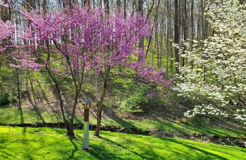 Area attractions are plentiful, but the peace and quiet on the front porch is worth staying in. Sit and pick a tune on the guitar or sing to your heart's desire, this cabin located in a wooded hollow that will bounce it back to you! For those who just can't let go-- A strong VERIZON 4G CELL phone signal inside the cabin. Free WIFI . Security Alarm system w/ motion sensor. Oh yes, dishwasher, w/d, no sweat! Once you've experienced this get-away, you'll want to come back again and again----a truly one of a kind wonderful wooded hills cabin that borders Hoosier National Forest whose owners are lovingly sharing their experience with you.