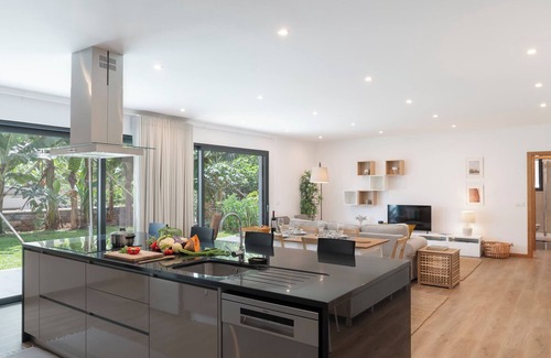 A new, spacious and modern house with two floors and a surrounding outdoor space with a garden, sun loungers and an al fresco dining area that offers the ideal setting for late-afternoon get-togethers.