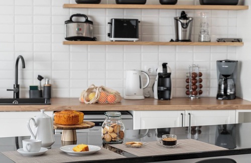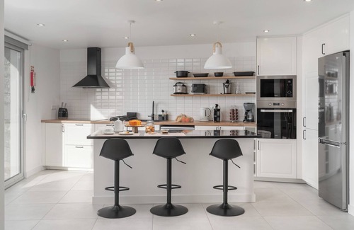 Downstairs you'll find a large, beautiful living room with a large sofa bed, a fireplace and a dining table to bring the family together for meals. The open-plan kitchen is fully equipped so you can prepare your own meals.