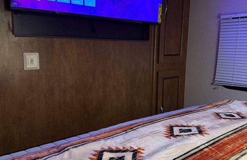 Experience Stephenville like a local in this adorable 2-bedroom recreational vehicle. The cozy space features 1 queen bed and 3 twin bed, perfect for a small group of guests. Enjoy amenities like WiFi, AC, and heating, along with a bathroom equipped with a bathtub and hair dryer. Plus, there's a living room with a comfy futon for relaxing after a day of exploring. We hope you'll enjoy your stay at our recreational vehicle.